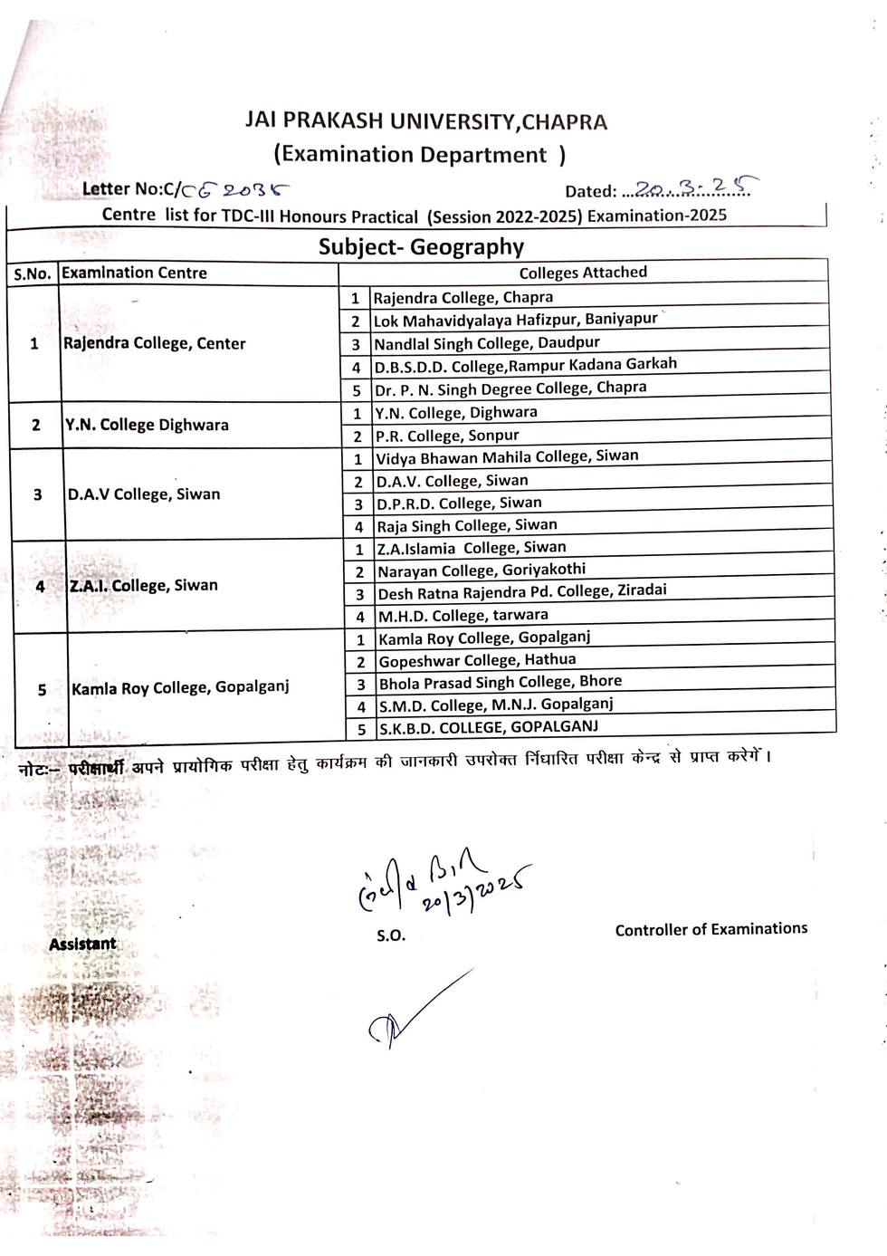 Programme & Centre List for Practical Examination of TDC-PART-3-Exam-2025-Session 2022-25